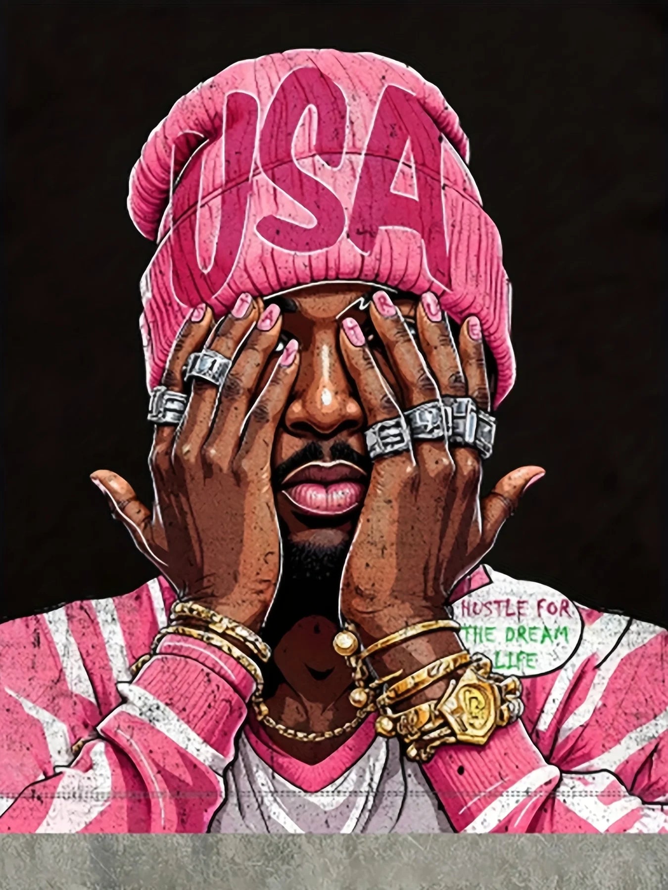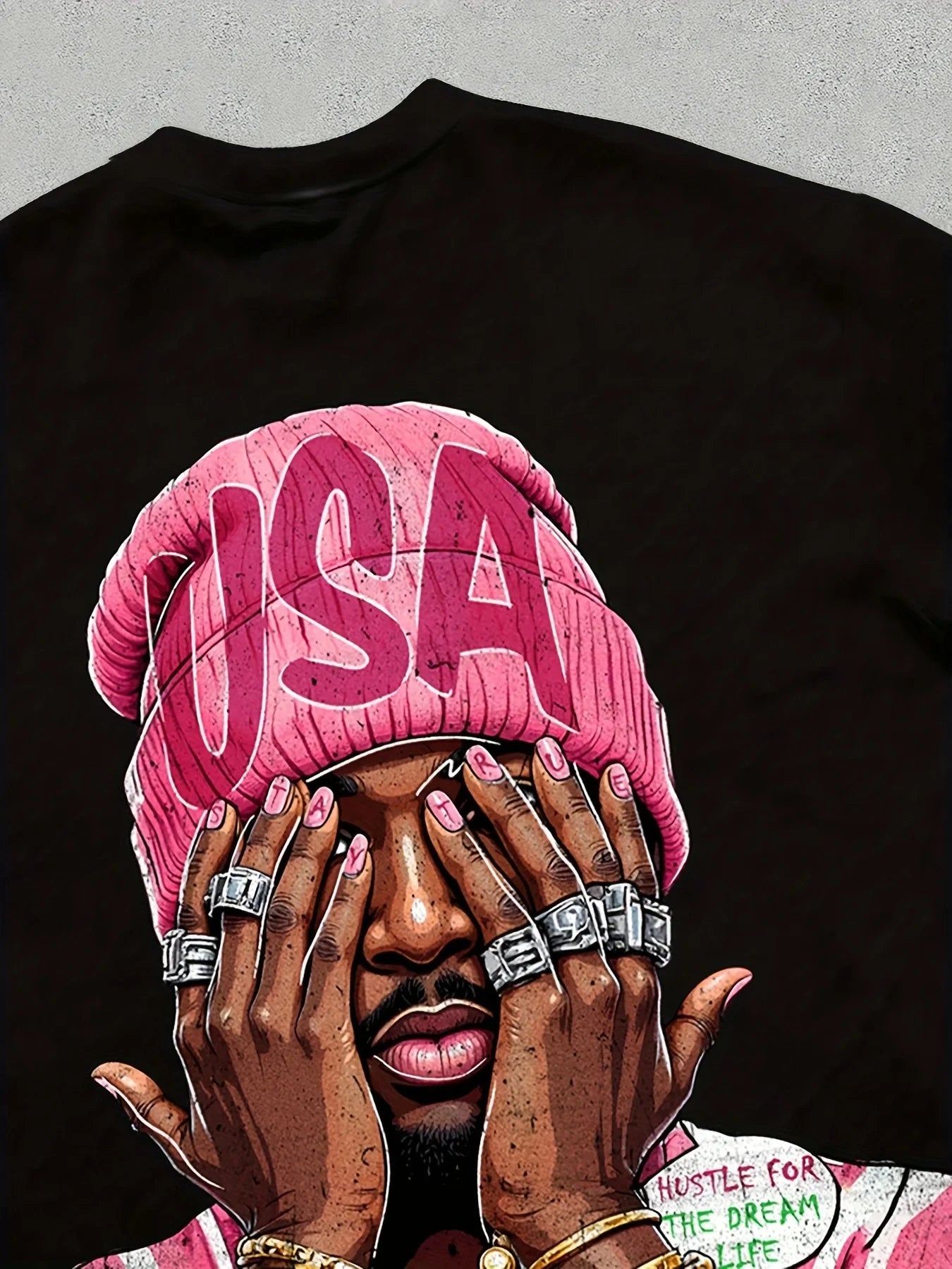 Camiseta informal de verano de manga corta para hombre, con estampado gráfico de EE. UU., diseño rosa y blanco, cuello redondo, ligera y transpirable.