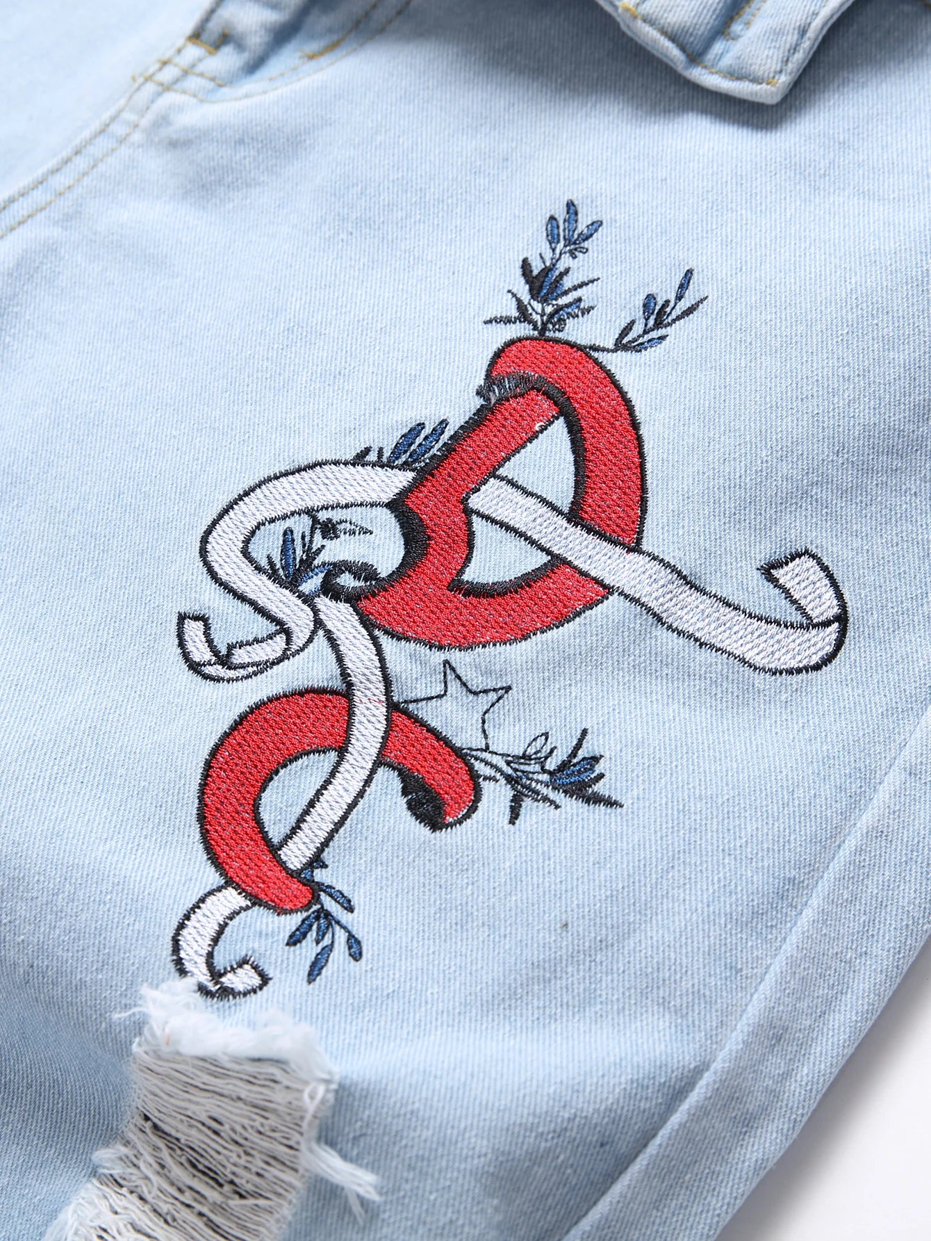 Pantalon Largo Vaqueros desgastados de color azul claro para hombre con bordado de colores juguetones, ropa de calle americana